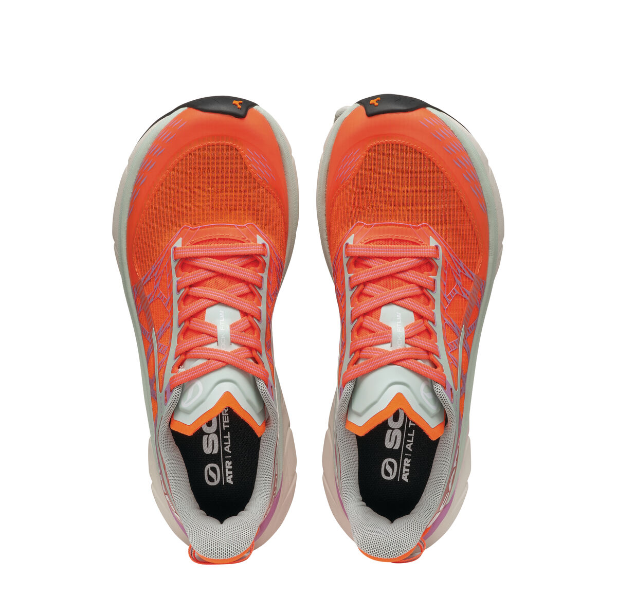 Горната част е изработена от издръжлива и дишаща мрежа, подсилена с 3D принтирани елементи за допълнителна стабилност. Конструкцията Sock-Fit LW на SCARPA обгръща стъпалото като чорап, елиминирайки точките на натиск и осигурявайки прецизно и удобно прилягане. Езикът е изработен от лека, проветрива материя, но запазва класическата форма на обувката.