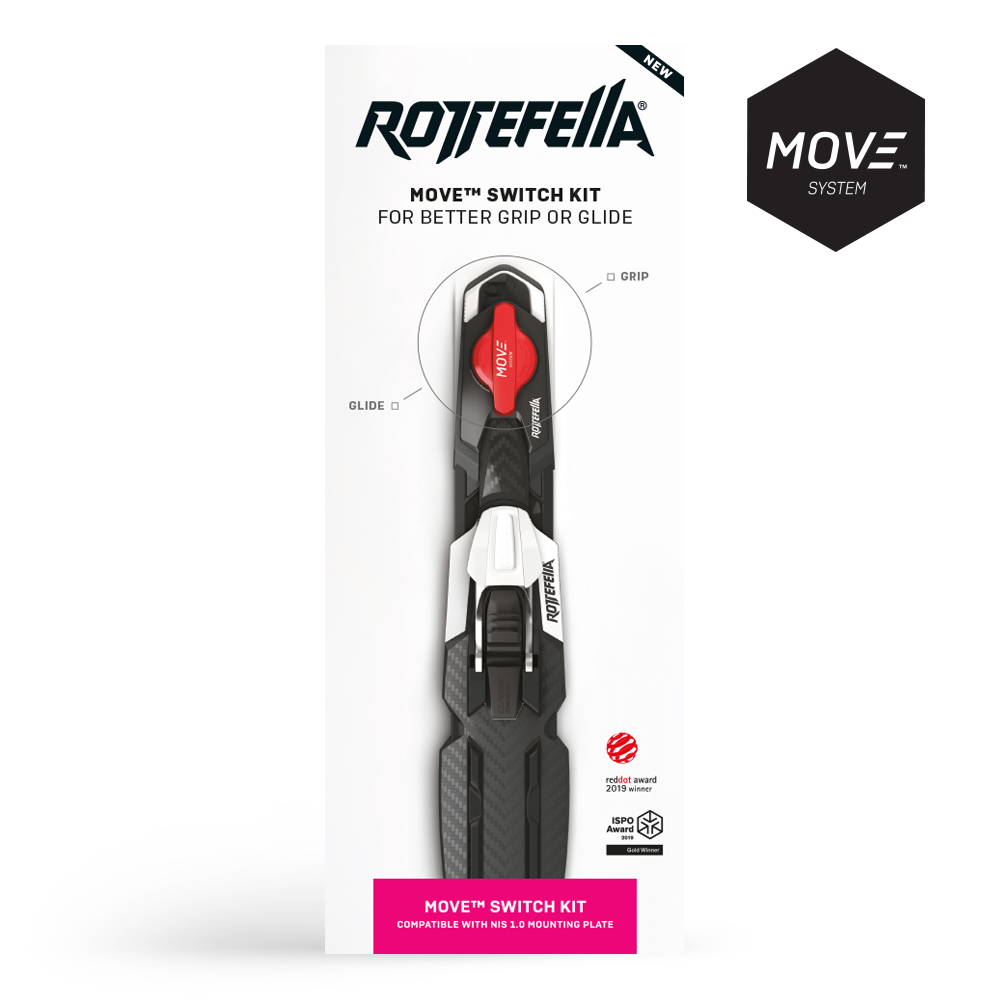 Комплектът Rottefella Move Switch KIT за NIS 1.0 осигурява подобрено сцепление и плъзгане само с едно завъртане на MOVE switch механизъма. Така премествате автоматите без нужда от сваляне на ските - само завъртате! С повече опит може да го правите и в движение. Преместете автоматите напред за по-здраво сцепление или назад за по-добро плъзгане. Перфектно решение за ваксирани ски или ски с колани. Системата Rottefella MOVE™ Switch е одобрена от FIS и може да се използва във всички състезания. Комплектът е съвместим с всички ски с NIS 1.0 монтажна пластина.